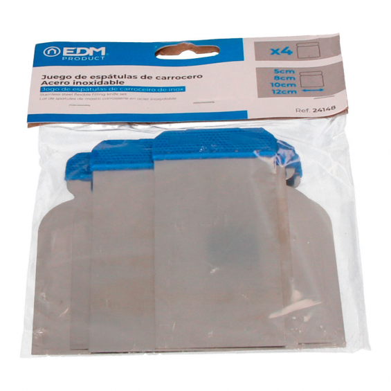 Juego de espátulas de carrocero acero inoxidable set 4 piezas: 5cm, 8cm, 10cm, 12cm edm