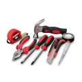 Juego de herramientas 8 piezas. contiene: cutter 18 mm, 2 destornilladores: 1 x plano (6 x 100 mm) y 1 x phillips (ph2 x 100 mm), alicate universal 150 mm, martillo de carpintero, cinta métrica 3 m, cinta aislante 1,9 cm x 10 m comprobador de corriente 140 x 3 mm y maletín