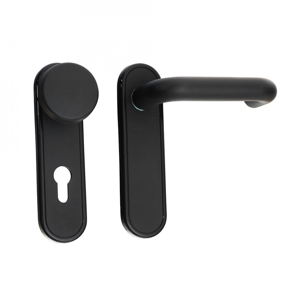 Juego de placas pomo+manilla cortafuego 1.07070.28.0 cisa juego placas pomo fijo y agujero para cilindro d.e.72mm + manilla ciega cortafuego acabado negro