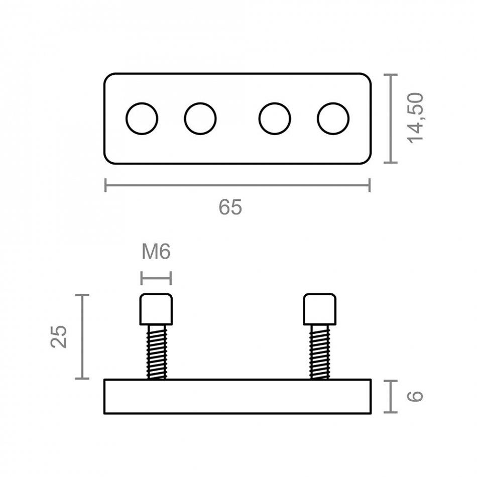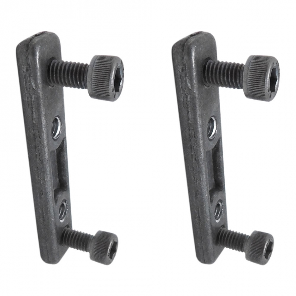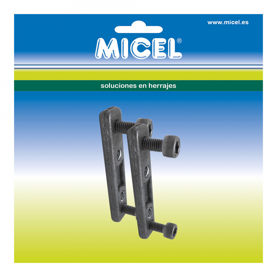 Para el perfil de carga inferior del toldo. valido para la mayoria de toldos. incluye 2 pletinas y 4 tornillos allen m6. material zamak. acabado natural. dimensiones: 65x14,50x6mm.