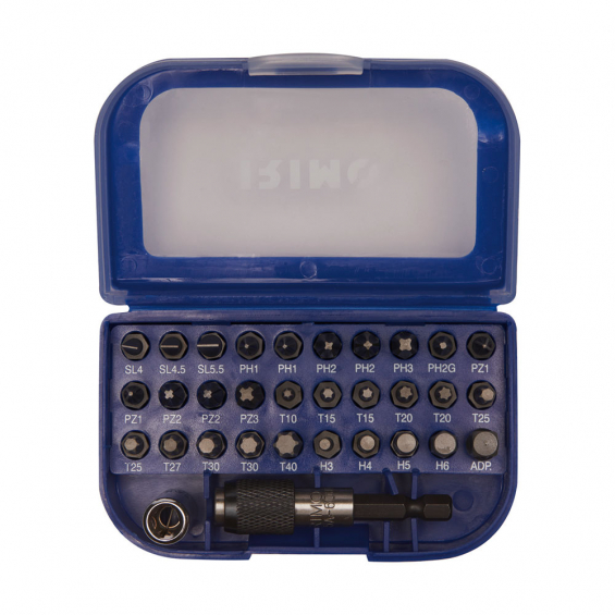 Juego puntas 1/4 con portapuntas magnético, 32 piezas 475-32-1. incluye 29puntas, 1portapuntas magnético de liberación rápida, 1adaptador para vasos y 1adaptador para puntas. cuadradillo hexagonal de 1/4. para tornillos ranurados, phillips, pozidriv, torx® y hexagonales. -ranurados: 4,0, 4,5 y 5,5. -phillips: 2ph1, 2ph2, ph3 y ph2g. -pozidriv: 2pz1, 2pz2 y pz3. -torx: t10, 2t15, 2t20, 2t25, t27, t30 y t40. -hexagonales: h3, h4, h5 y h6. adaptador para puntas hembra de 1/4" para puntas hexagonales hembra de 1/4". adaptador para vasos con cuadrado de 1/4", con bola para llave de vaso normal (estilo c6.3). portapuntas magnético con liberación rápida y sistema de bloqueo (estilo e6.3). en una pequeña caja de plástico con clip para el cinturón. en blíster. din 3126, iso 1173, estilo c 6.3."