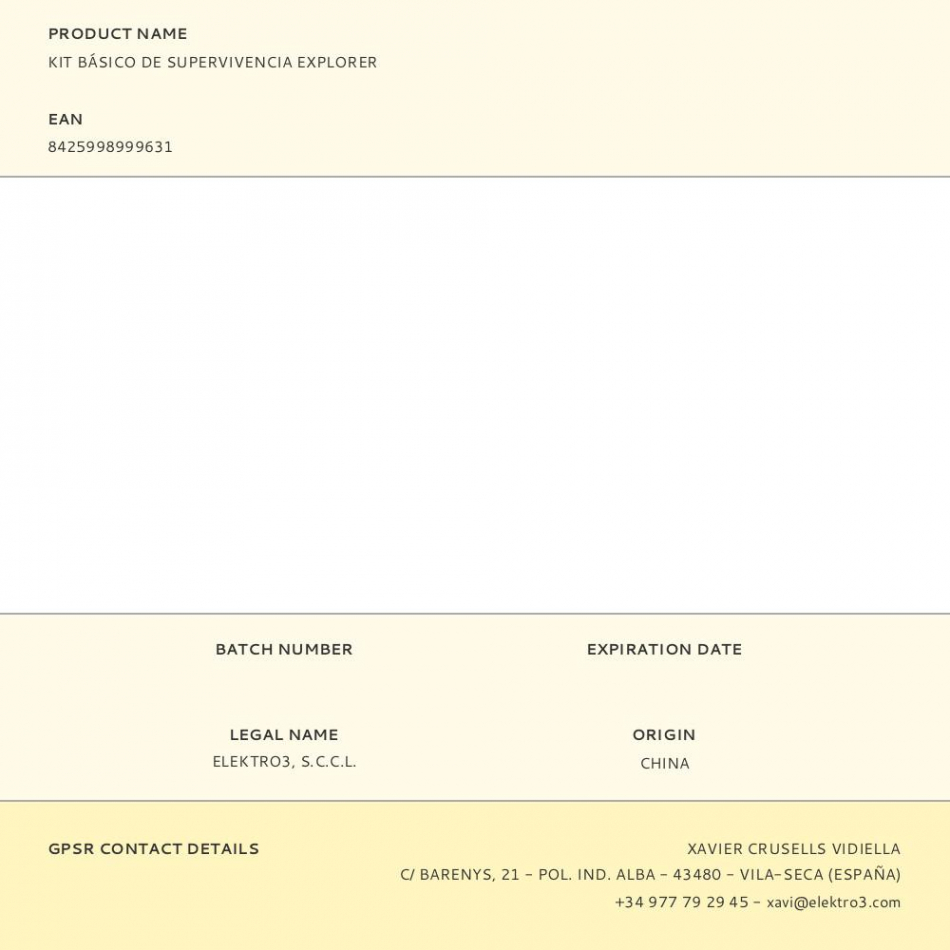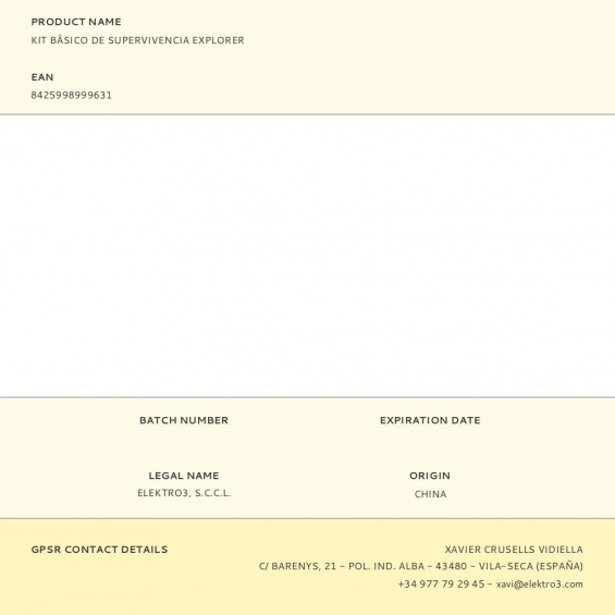 Kit de supervivencia compuesto por: 51117 radio portatil 9 bandas 31839 lampara solar 36126 linterna led solar 2 x 36123 linterna frontal 2 x 38596 10 pilas aaa varta 2 x 38597 10 pilas aa varta 73783 cocina portatil gas 4 x 90900 cartucho gas 227gr 47150 cinta americana negra 08557 multiherramienta 99734 kit primeros auxilios 4 x 36265 vela blanca 2 x 08096 encendedor 76653 termo acero inox 1 l y 02438 mochila 9 l