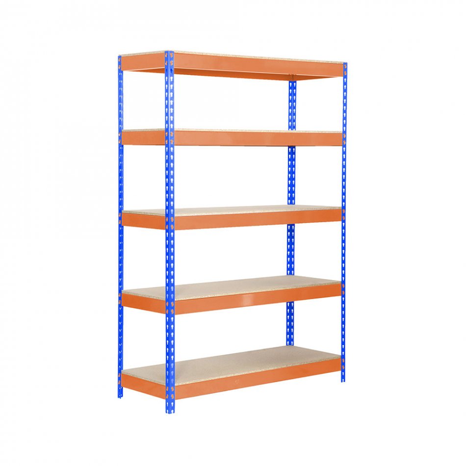 Estanteríametálicasintornillosdecolorazul/naranja/maderaconcapacidaddecargaporestantede300kg.elnúmerodeestanteses5ylasmedidas(altoxanchoxfondo)son2000x1200x600mm.incluyebandejasdeaglomerado.productoespañol,calidadeuropea,podrásencontrarlasintruccionesdemontajeensuinterior.medidasenusodelproducto:1975x1210x610mm