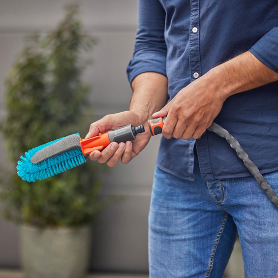 Kit de cepillo de limpieza de bicicletas y jabón 18865-34 gardena para limpiar bicicletas, remolques de bicicletas, carritos contenido 1 x barritas de champú wax 1 x cepillo para bicicletas