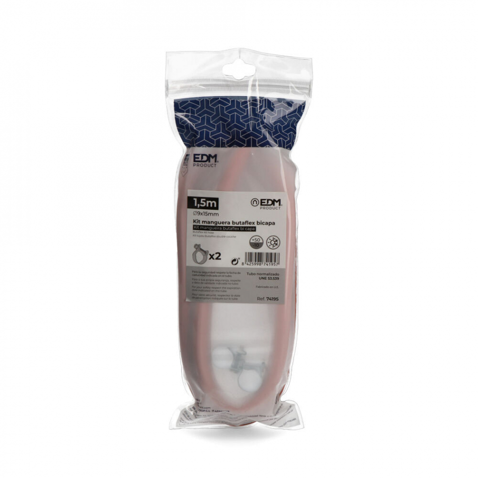 Kit manguera butaflex bicapa ø interior 9mm ø exterior15mm 1,50m (incluye 2 abrazaderas) solo para ser usado en españa
