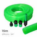 Kit manguera de jardin 15 m (3/4" 19 mm), color verde fluor, manguera flexible pvc, 3 capas, presión máxima: 25 bar. tratamiento anti-algas.temperatura de uso: -10°/+60°. con accesorios