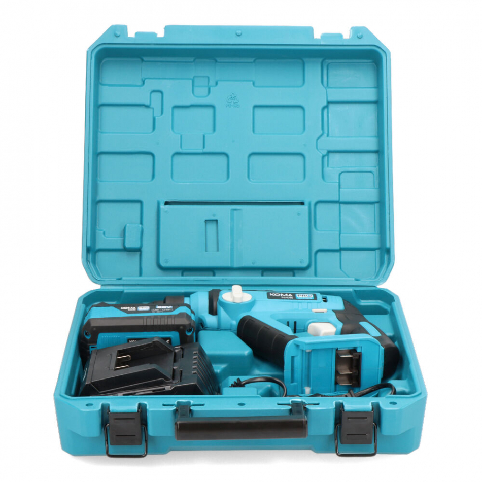 Kit maletin con martillo percutor 20 v, batería y cargador con dos tipos de función taladro/ taladro + percutor, diseño ergónomico y compacto. maletín de transporte incluido. velocidad 0-850 rpm percusión 0-5000 ipm. bateria incluida 1 x 4,0 ah luz de trabajo y portabrocas sds plus. fuerza de impacto 1,3 julios. 20v-mpc-k