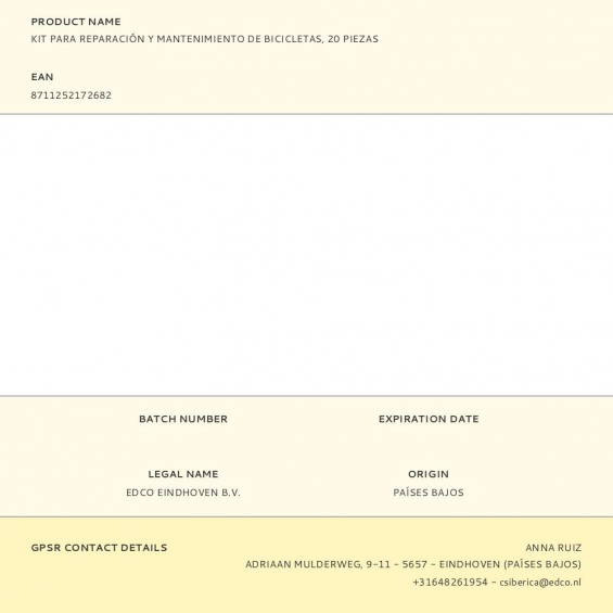 Kit para reparación y mantenimiento de bicicletas, incluye: llave de cadena, herramienta para carcasas de rodamiento, llave para pedales 15 mm, llave allen 8 mm, llave o extractor de vaso, 6 llaves allen (2/2,5/3/4/5/6 mm) las de4/5/6 mm con cabeza de bola, 3 palancas para ruedas, tronchacadenas (6 - 10 velocidades), llave para radios(9/10/11/12/13/14/2 x 15), extractor de bielas de tipo cuadradillo, herramienta para bielas para platos y bielas hollowtech ii, extractor para cassettes shimano hg, llave torx (t25) y maletín para guardar y transportar de 28,5 x 6 x 21 cm