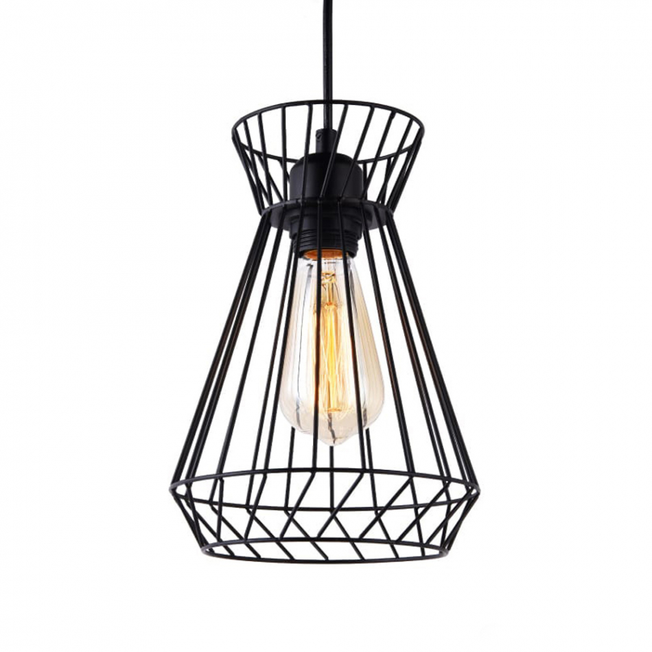 Lampara de techo metalica e27 (bombilla no incluida) potencia maxima: 60w. medida: ø19x26x130cm (diámetro/alto/largo) color negro. tension: 220-240v edm