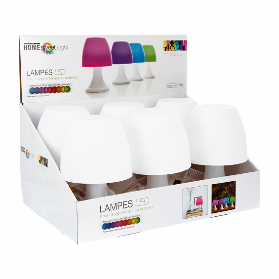 Lampara de sobremesa con led, rgb (color cambiante automático no seleccionable), a pilas 3xaaa/lr03 no incluidas. 0,2w. 10lm. incluye expositor. 9 colores diferentes. medidas display: 17,5x27,5cm