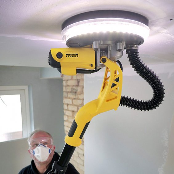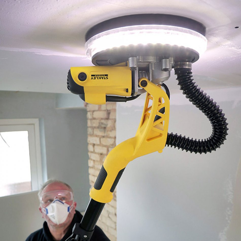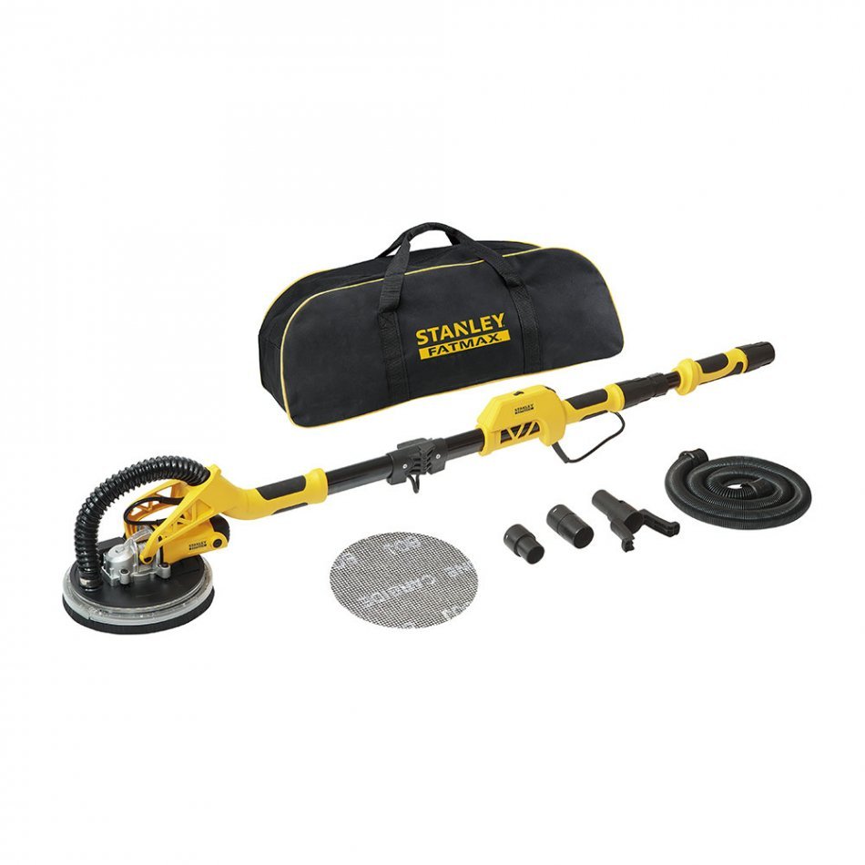 Lijadora de panel de yeso 750w sfmee500s-qs stanley velocidad variable 600-1.700 rpm, hoja ø225mm, luz led 360°. incluye 1 hoja, adaptadores para aspirador y bolsa de transporte