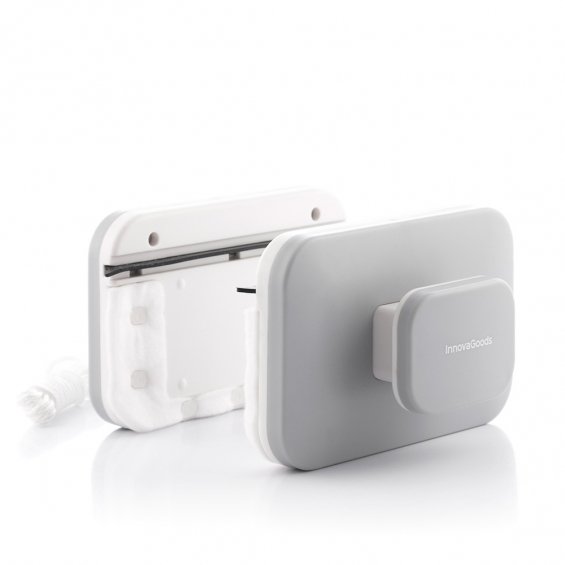 Limpiacristales magnético, permite limpiar superficies de vidrio, ventanas, mamparas, puertas correderas, etc. esta imantado de doble cara. se desliza simultáneamente por la superficie de vidrio delantera y trasera, imanes de neodimio. apto para doble acristalamiento de 20 mm máx. seguridad anticaída de más de 2 m. goma limpiadora extraíble y separador de imanes. contiene 2 esponjas de microfibra extraíbles, lavables y reutilizables. incluye 2 gomas de repuesto y 2 esponjas de repuesto.