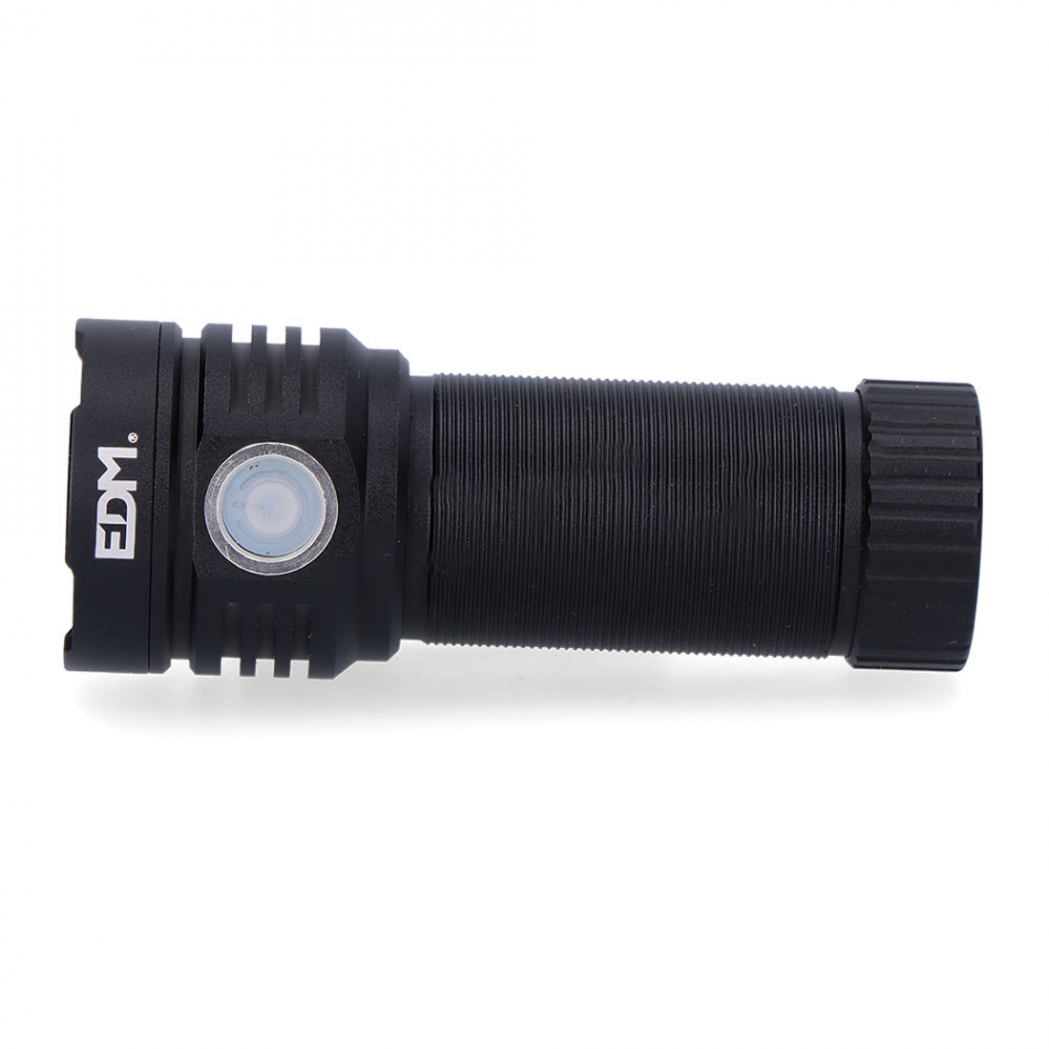 Linterna 3 leds 30w recargable.autonomia modo potente :1350lm/1h modo media potencia: 320lm/2.5h modo suave: 70lm/9h modo turbo+modo potente: 3300lm/30s+1350lm/45min. luz flash: 1350lm/1h. pulsar 2 veces para encender modo flash.medida: ø4x10,5cm. material: aluminio. resistencia a salpicaduras ip54.bateria 2000 mah de litio incluida, carga usb tipo c, cable incluido.