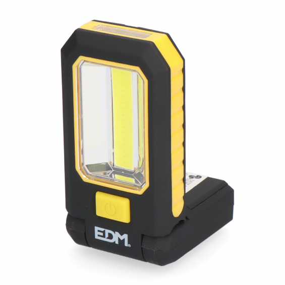 Linterna led cob xl 3 w 6500 k 150 lm y 3 mini led 0,2 w 9700 k 7 lm. con gancho, iman y base basculante 180°. funciona con 3 x aaa (incluidas) medidas: 5,6 x 16 x 2,5 cm. ip20. presentado en expositor de 12 uds