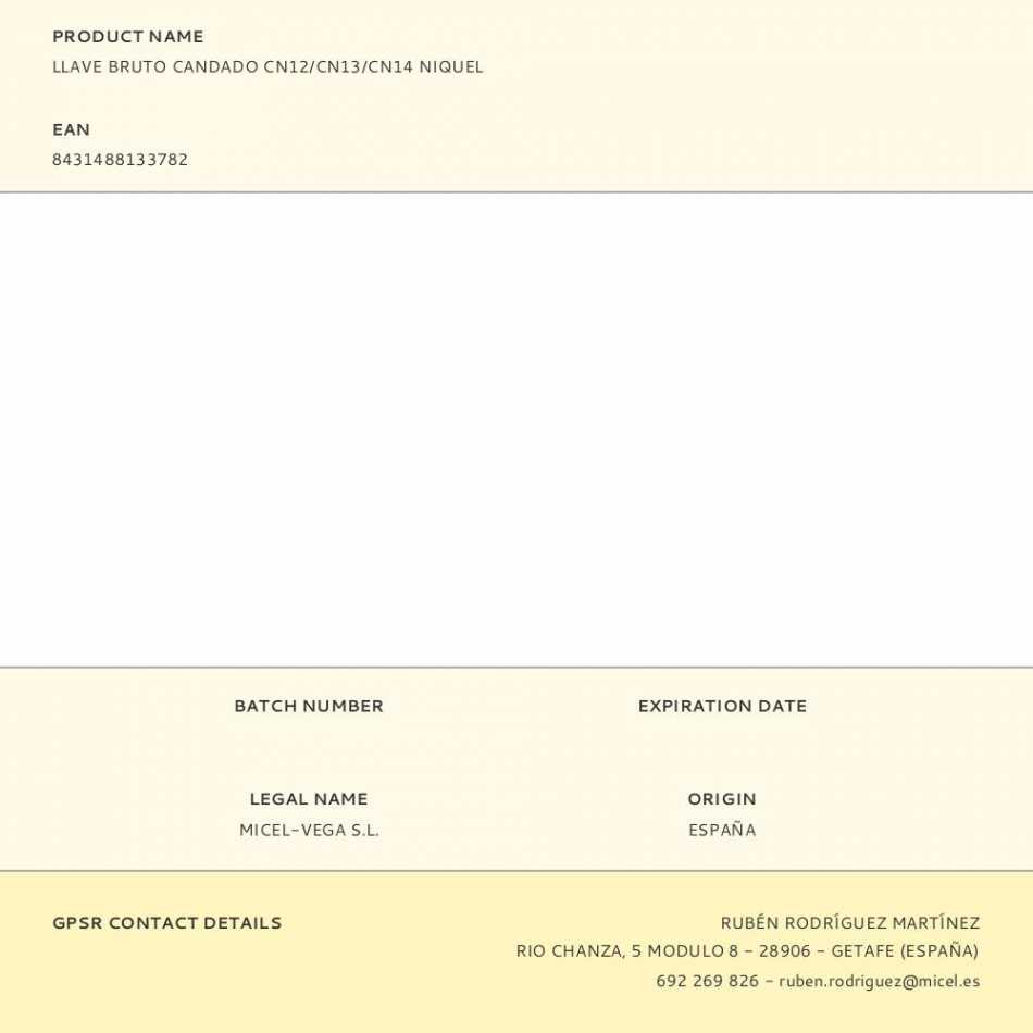 Fabricante:   Micel    P/N:      EAN:  8431488133782    Código:  364938