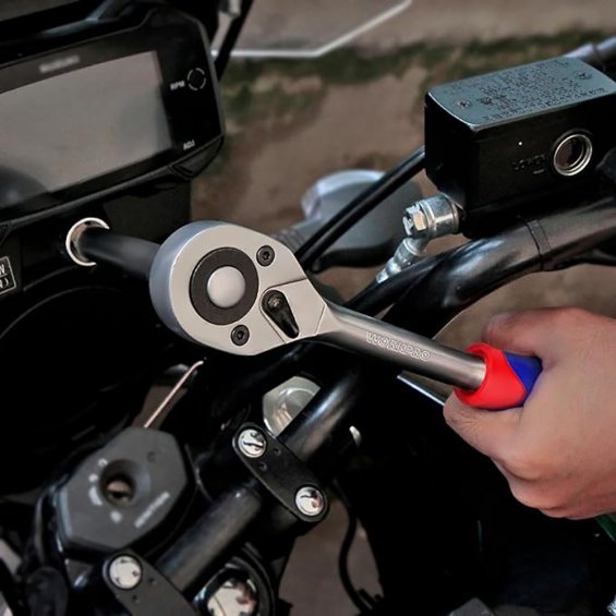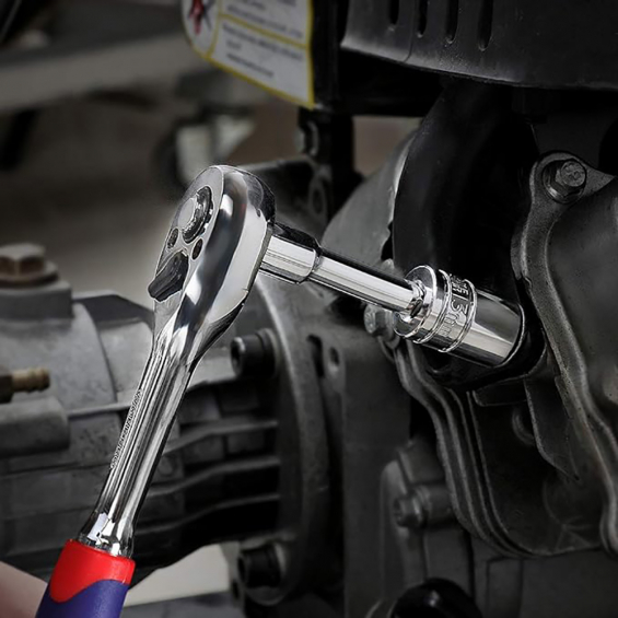 Juego de 14 llaves de vaso de 1/4. juego de vasos de acero al cromo vanadio 12 vasos dr. de 1/4": 4 4,5 5 5,5 6 7 8 9 10 11 12 13 mm. 1 barra de extensión dr. de 1/4" x 3". 1 unidad de 1/4" " dr. carraca. cromado mate. azul y rojo. workpro
