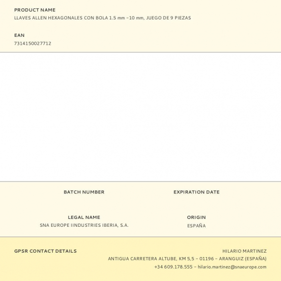 Llaves allen hexagonales con bola1.5 mm -10 mm, juego de 9 piezas