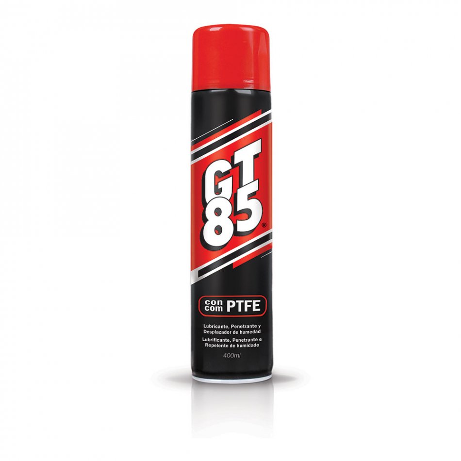 Lubricante 400ml, aerosol, gt85 es un spray limpiador y lubricante de uso general. la fórmula única contiene ptfe y es excelente para limpiar, proteger y lubricar casi cualquier cosa. excelente penetración y agente liberador, altamente eficaz para aflojar piezas atascadas, la fórmula de ptfe ayuda a lubricar y prevenir chirridos, expulsa la humedad, especialmente de los sistemas eléctricos y se puede utilizar en todas las superficies metálicas y pintadas de fábrica. 57x75x250mm 0,40kg. gt-85