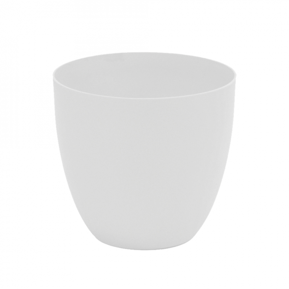 Maceta de inyeccion modelo cuenco ø18cm color blanco. pensada para uso en exteriores, por su alta resistencia a los rayos solares, su robustez y su textura.