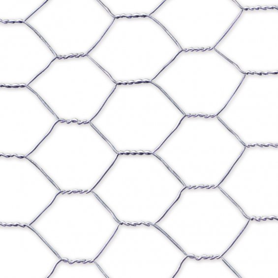 Malla metalica de triple torsion galvanizada (gallinera) cuadro: 19x0,7mm / 0,5x10m estructura en forma hexagonal, color gris.
