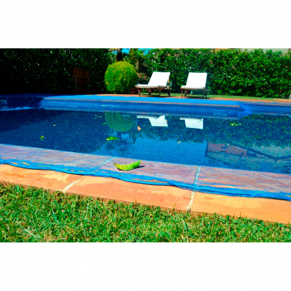 Malla para piscina 6x10m (ancho/largo) leaf pool cover. un cobertor fácil de instalar y que no necesita de ninguna fijación para mantenerse sobre el agua, la piscina se mantiene limpia de hojas e insectos y permite disfrutar del baño al retirarlo sin dedicar tiempo a la limpieza. además durante la epoca de hibernación protegemos nuestra piscina hasta la siguiente temporada. medidas adaptadas a la mayoria de piscinas prefabricadas. la cuerda plomada que recorre el perímetro de leaf pool cover le confiere un peso que permite mantenerse sin necesidad de ser fijado. no tenemos que perforar nuestro jardín o terraza, ni realizar ningun tipo de obra para su efectiva y rápida instalación. tejido monofilamento de polietileno de alta densidad (hdpe). cuerda poliamida con alma interior con rosario de plomo.