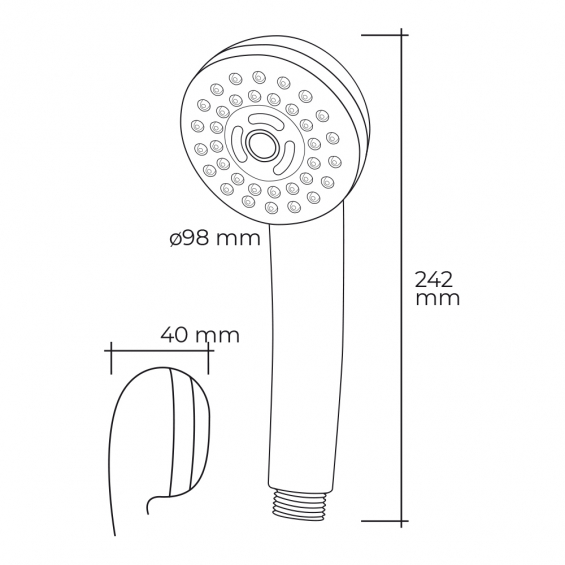 Mango de ducha anticalcareo. moderno. 3 funciones. dimensiones: ø9,8x4x24,2cm. color cromo. ergonomico. material: abs. edm