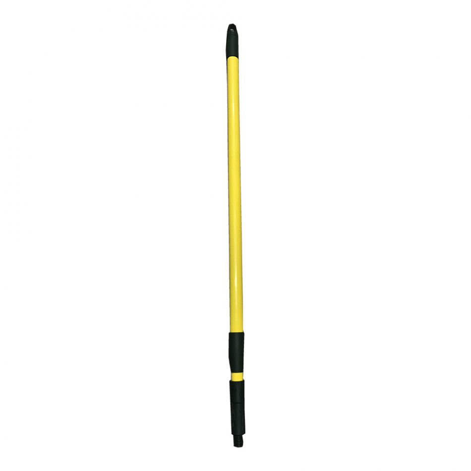 Mango extensible para cepillo de barrer césped (0,80m - 1,40m). apliques para sujeción y refuerzo en pvc. con orificio para colgar en la parte superior. mango lacado en amarillo. mango metal extensible máximo 1.4m. altura minima 0.8m. rosca universal. 28051 faura