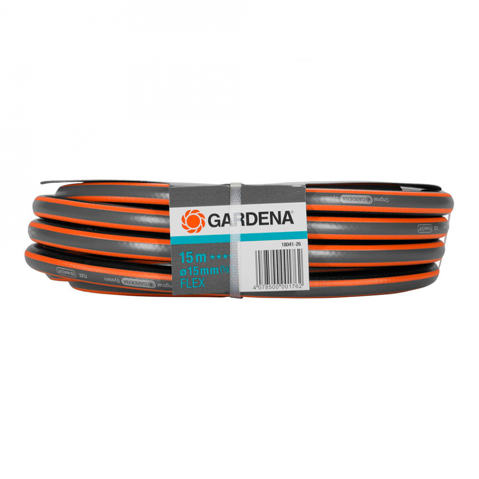 Manguera de riego flex ø15mm (5/8") rollo con 15m de manguera. resistencia de presion: 25bar. material: pvc entramado de alta calidad. tratamiento anti uv. gardena