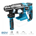 Martillo percutor 20 v li-ion (no incluye bateria y cargador). velocidad variable de 0-1.500 rpm. frecuencia de impacto: 0 a 5500 t/min. fuerza de impacto: 1,8 j. 3 funciones (percutor + taladro + taladro/percutor). portabrocas sds+. capacidad de perforación madera 26 mm, acero 13 mm, hormigon 20 mm. mango adicional con varilla de control de profundidad. luz led para iluminar el punto de trabajo. para un funcionamiento óptimo de este artículo se aconseja utilizar una batería ref. 08771. 20v-mp, dimensiones: 30 x 18,5 cm