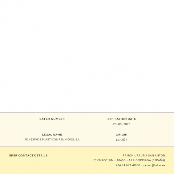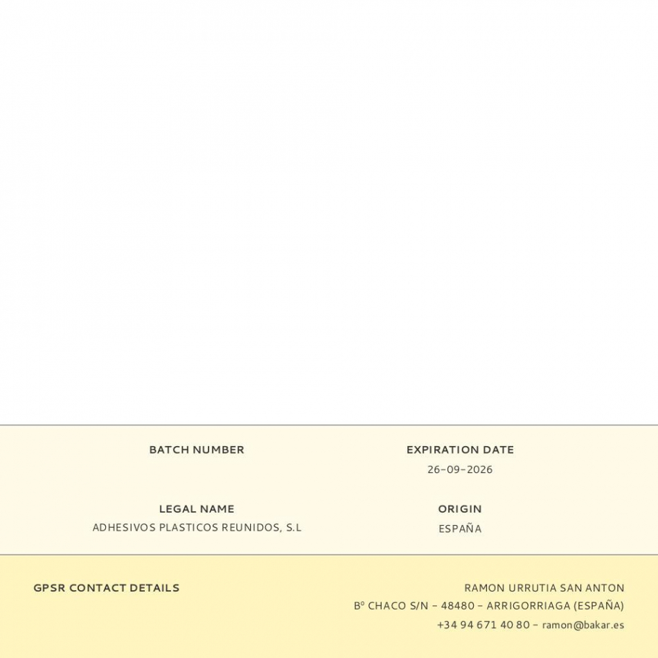 Fabricante:   BAKAR    P/N:      EAN:  8413973323250    Código:  373169