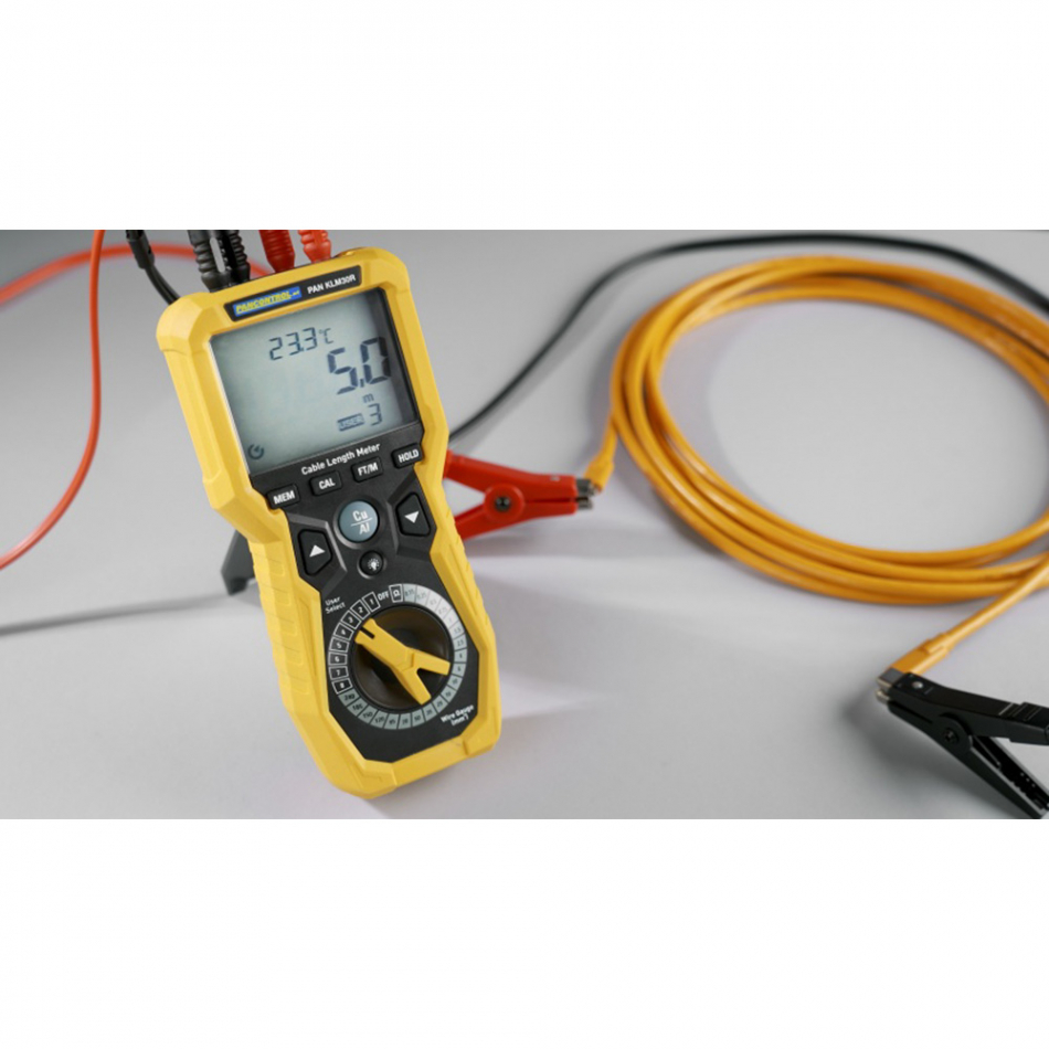 Medidor de longitud de cable pan klm30r pancontrol. instrumento de medición de longitud de cable 0,15-240mm². para cables de cobre y aluminio.8 celdas de memoria personalizables para cables especiales. compensación automática de temperatura.indicador digital iluminado de 17mm. medición de longitud de cable 0,1m-30km. resolución 0,1mo