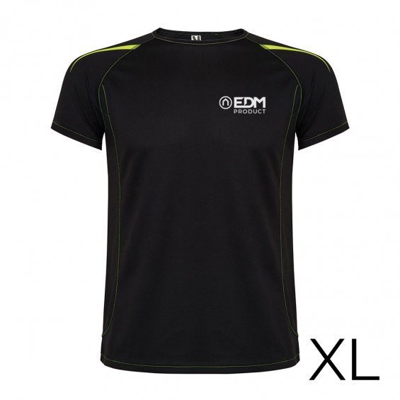 *merchandising* camiseta deportiva negra talla-xl roly edm. camiseta técnica transpirable confeccionada 100% en poliéster de punto liso de 150g/m². ideal para tus tardes de padel, running, fútbol o cualquier otro deporte. y si tu pedido a elektro 3 supera los 1500€, te la regalamos.