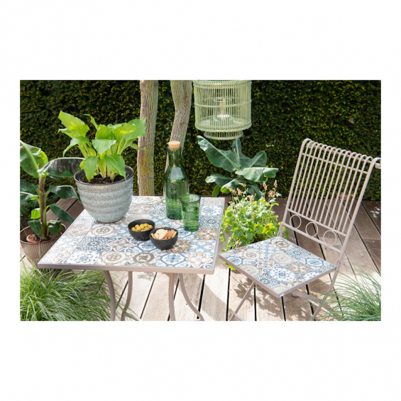 Mesa metalica/mosaico bistro color marron para exterior 78 x 78 x 77 cm