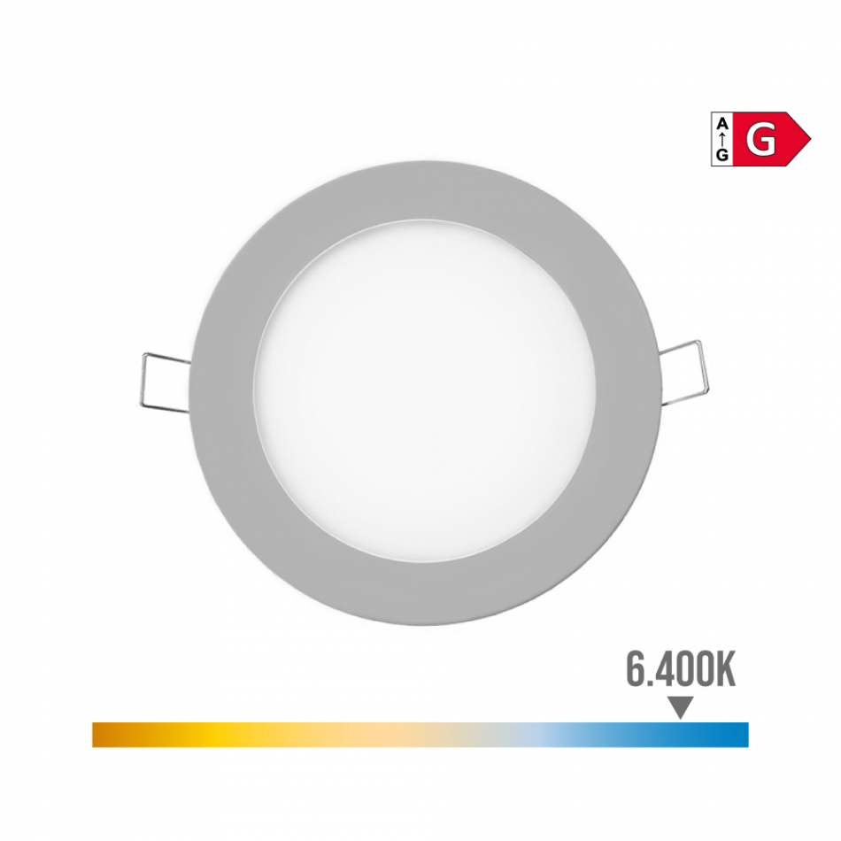 Mini downlight led empotrable redondo 6w 6400k luz fria 320lm. color cromo. angulo de apertura: 120°. ip20. clase energetica g.medidas: exterior: ø11,7cm - enclavamiento: ø10,8cm 220-240v 25.000h edm