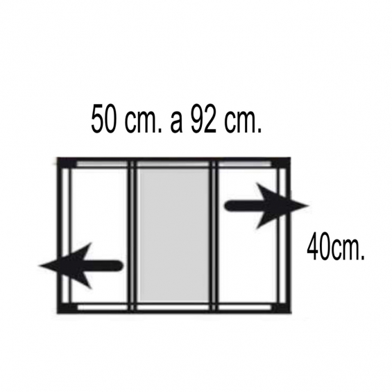 Mosquitera extensible blanca 50 x 40 cm, dos hojas que se desplazan horizontal o verticalmente en sentido contrario hasta alcanzar el tamaño maximo: 5092 x 40 cm, 4072 x 50 cm
