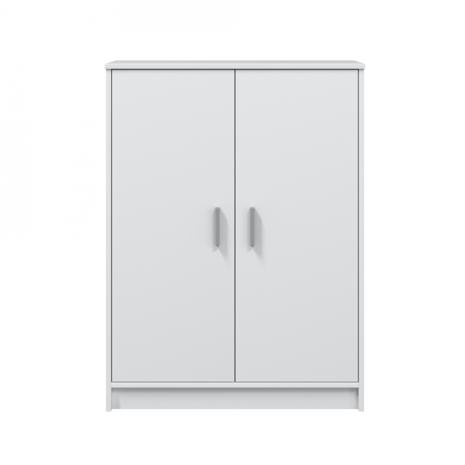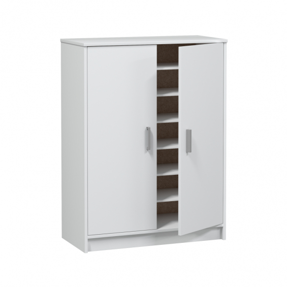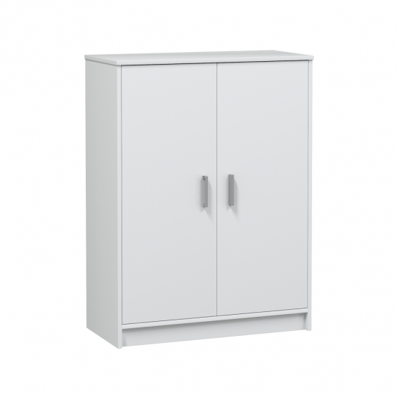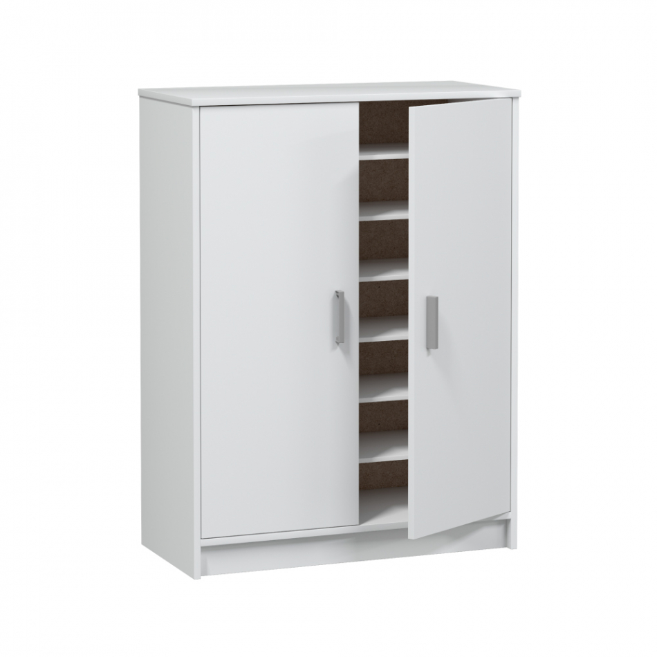 Mueble de 2 puertas y 6 estantes. color blanco. material: melamina. contiene: bisagras metálicas, soporte estantes metálicos, tacos abs quitarruidos y antirayas y tiradores abs pintados en gris aluminio. medidas: 75 x 36 x 101 cm