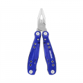 Multiherramienta 15 en 1, mango de aluminio azul, mordazas y accesorios de acero inoxidable. contiene: alicates de punta larga, alicates estandar, cortador de cable, navaja grande y pequeña, punzón, destornillador plano (s,m,l), destornillador phillips, abrebotellas y abrelatas, descamador de pescado, sierra, lima y bolsa de almacenamiento