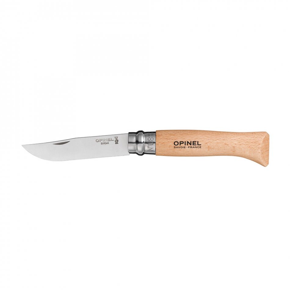Navaja acero inoxidable nº8, mango de haya y barniz transparente, hoja de 8,5 cm