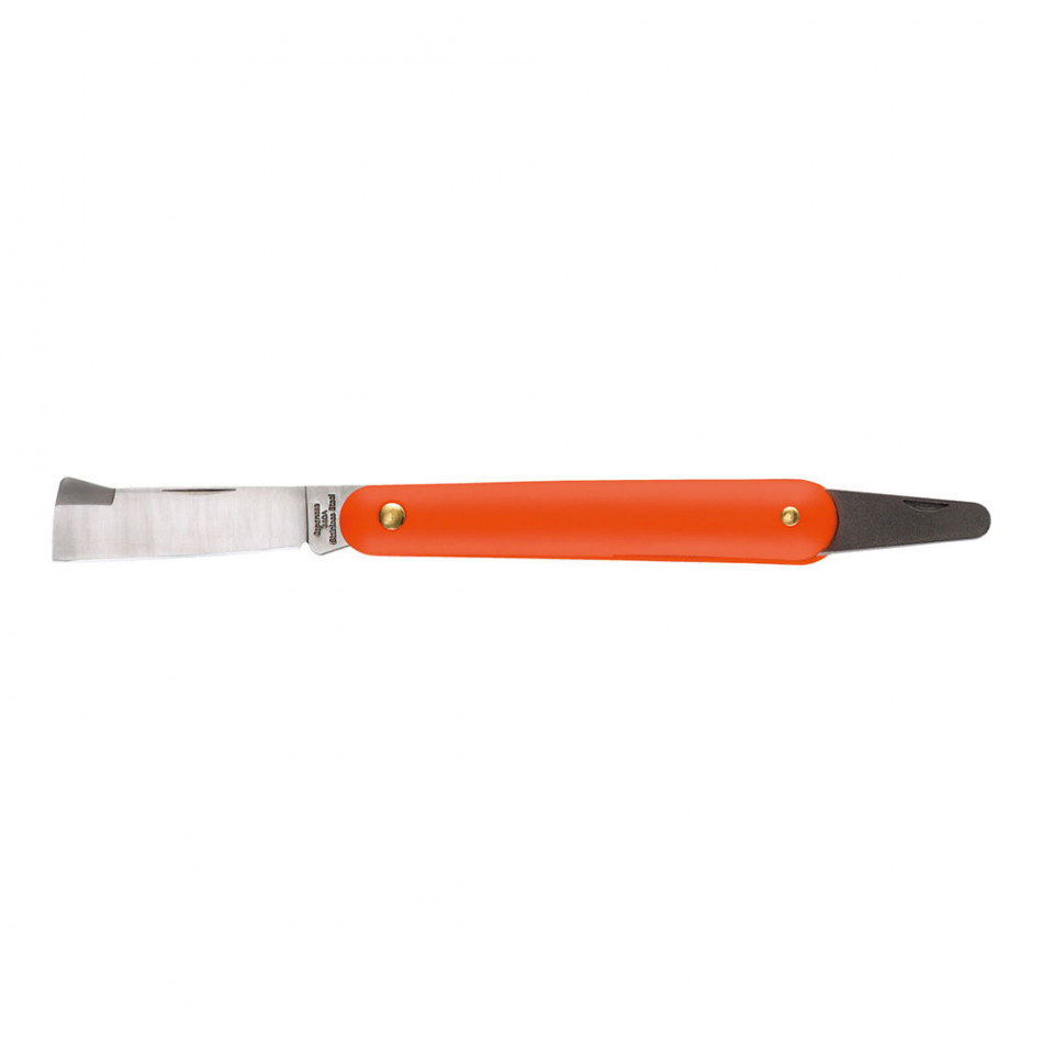 Navaja de injertar 55mm mango de plástico, con levanta corteza.navaja para trabajos de injerto manual, para la jardinería, la poda y trabajos de manutención de las plantas. práctico y manejable. - hoja de acero temperado - mango de plástica robusta - con espátula trasera que se puede cerrar - plegable longitud hoja: 55mm- peso: 50gr stocker