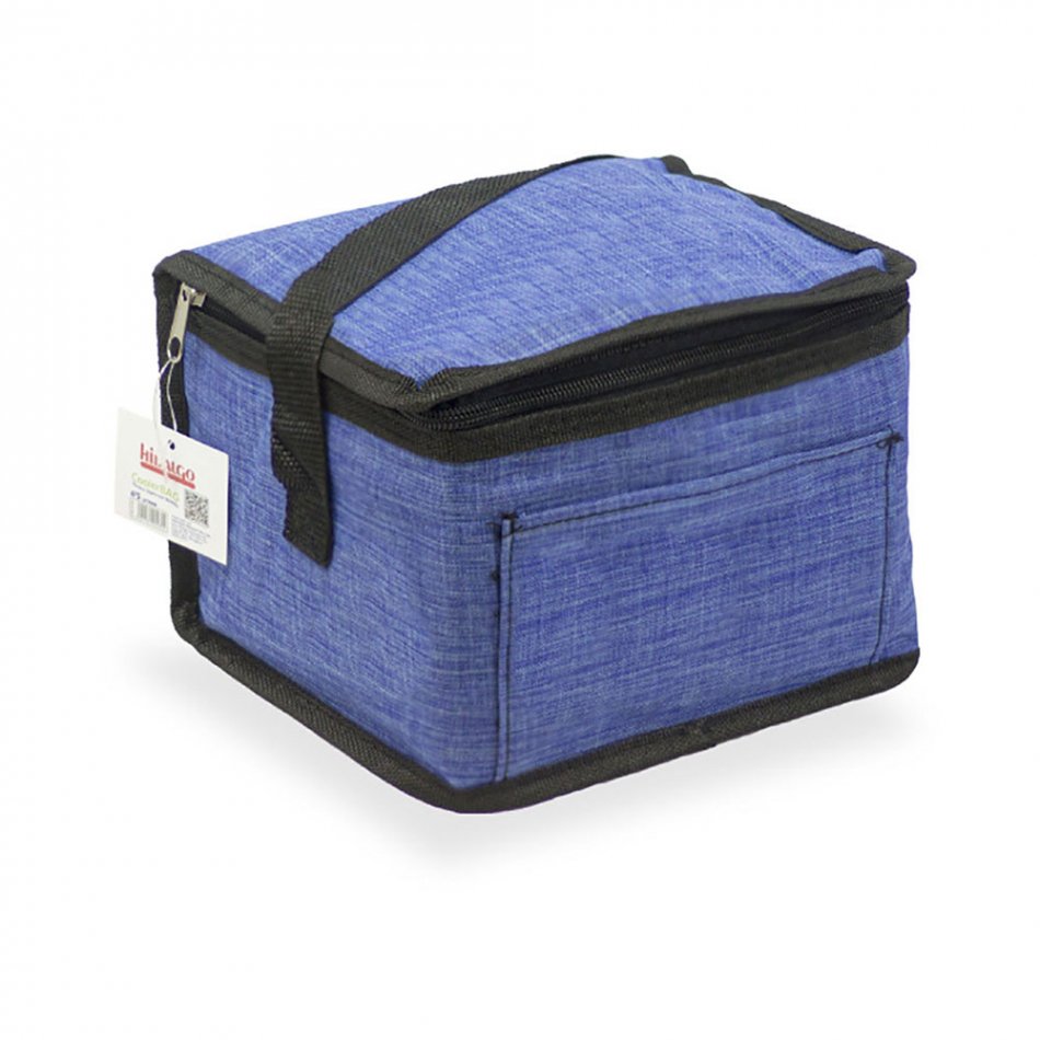 Nevera diseño tejana con asa color azul 4,5 l con revestimiento isotérmico epe de 5 mm. medidas: 20 x 15 x 15 cm
