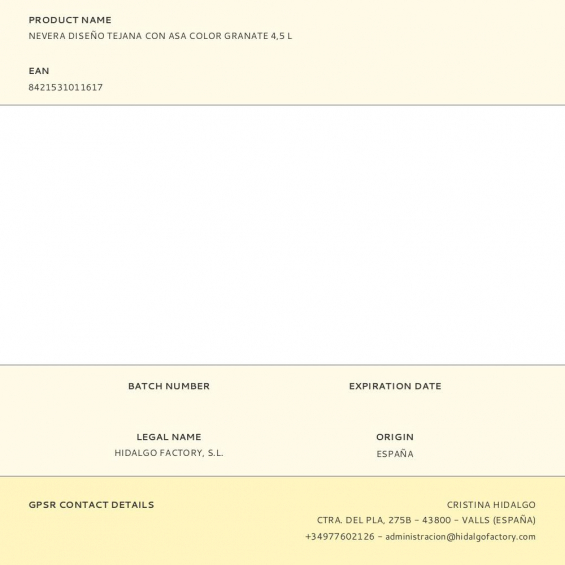 Nevera diseño tejana, color granate. 4,5 l. con correa ajustable, con aislamiento de capa de alu film y plástico protector, revestimiento con isotérmico epe de 5 mm. medidas: 20 x 15 x 15 cm