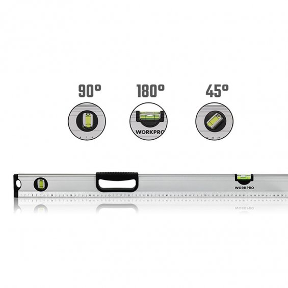 Nivel de burbuja 100cm. contera final a prueba de golpes. aleación de aluminio. precisión 1mm/1m, 3 viales (45°/90°/180°). workpro