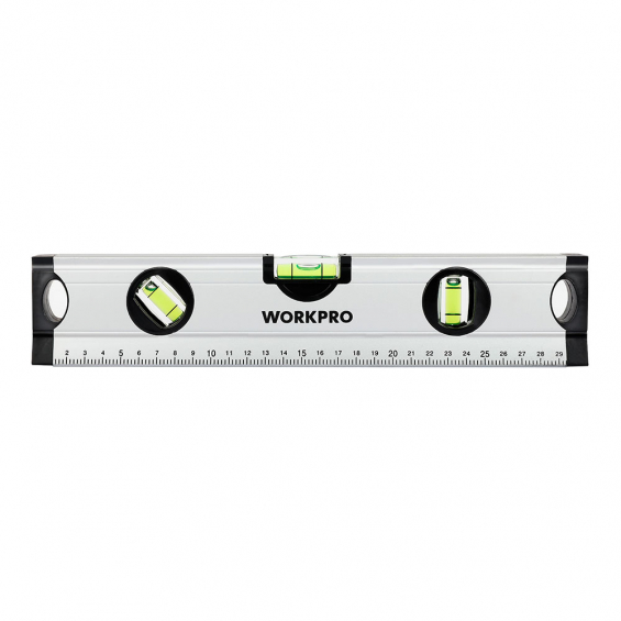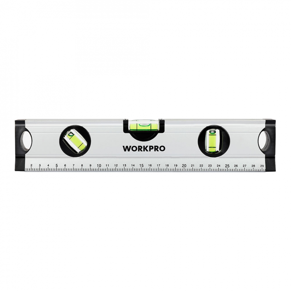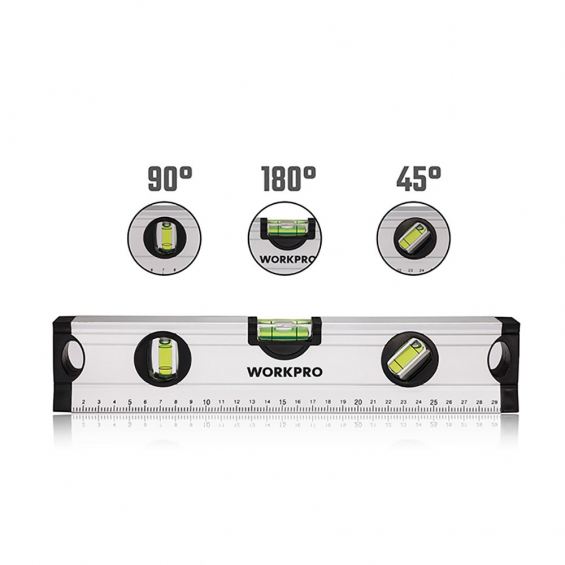 Nivel de burbuja 30cm. conteras a prueba de golpes. aleación de aluminio. precisión 1mm/1m, 3 viales (45°/90°/180°). workpro