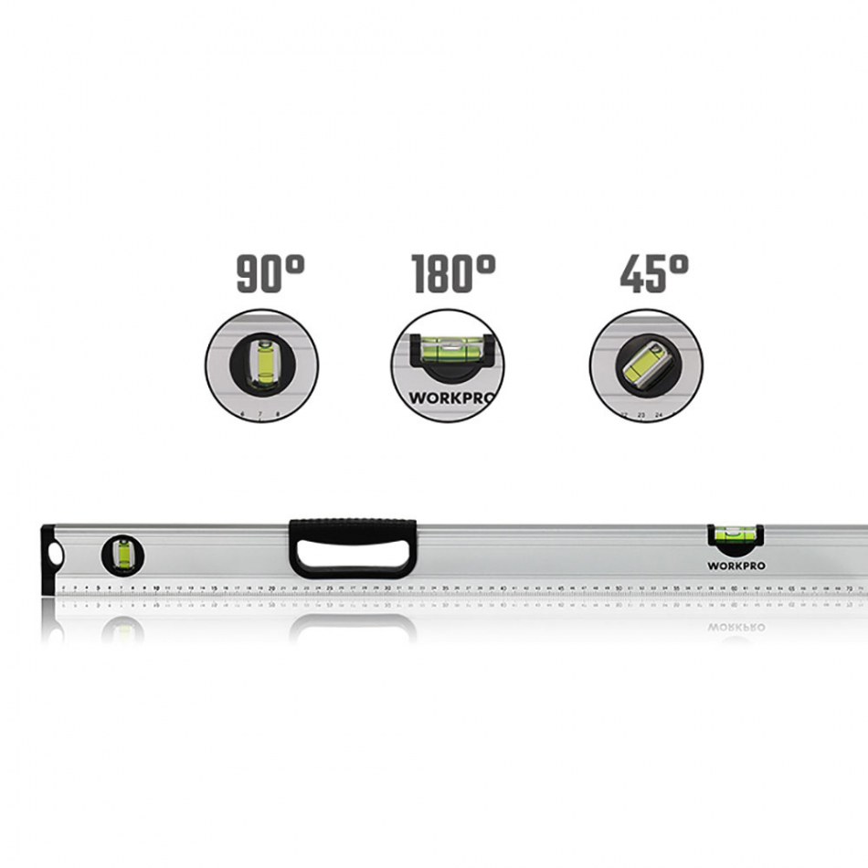 Nivel de burbuja 60cm. contera a prueba de golpes. aleación de aluminio. precisión 1mm/1m, 3 viales (45°/90°/180°). workpro