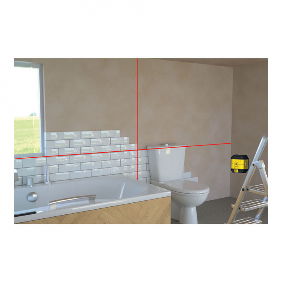 Nivel láser rojo en cruz cubix. alcance máximo de 12m. 0,6mm/m de precisión. proyecta una línea vertical y otra horizontal. nivelación automática con un rango de +/-4°. bloqueo del péndulo para una mayor protección durante el transporte. carcasa engomada. rosca 1/4" para utilizar con trípode. equipo estándar: soporte multiposición, 2xaa, bolsa de transporte. stanley