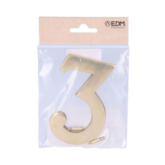 Número 3 latón pulido 10cm fijación invisible