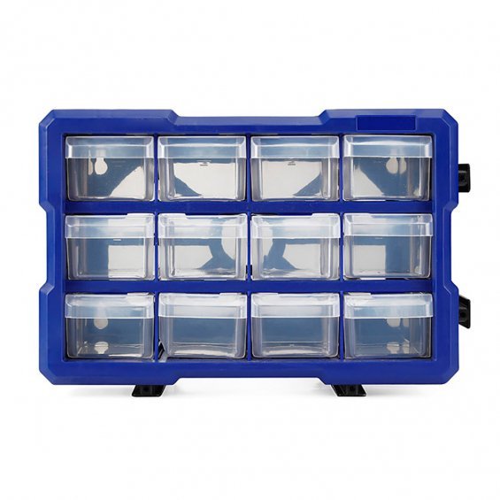 Organizador apilable de 12 cajones. tamaño del producto: 295x195x160mm cajones material pp transparente cómodo, duradero y fácil de llevar. estructura entrelazada apilable tanto lateral como verticalmente. con ranuras en la parte posterior, para colgar. adecuado para almacenamiento y organización diarios. workpro