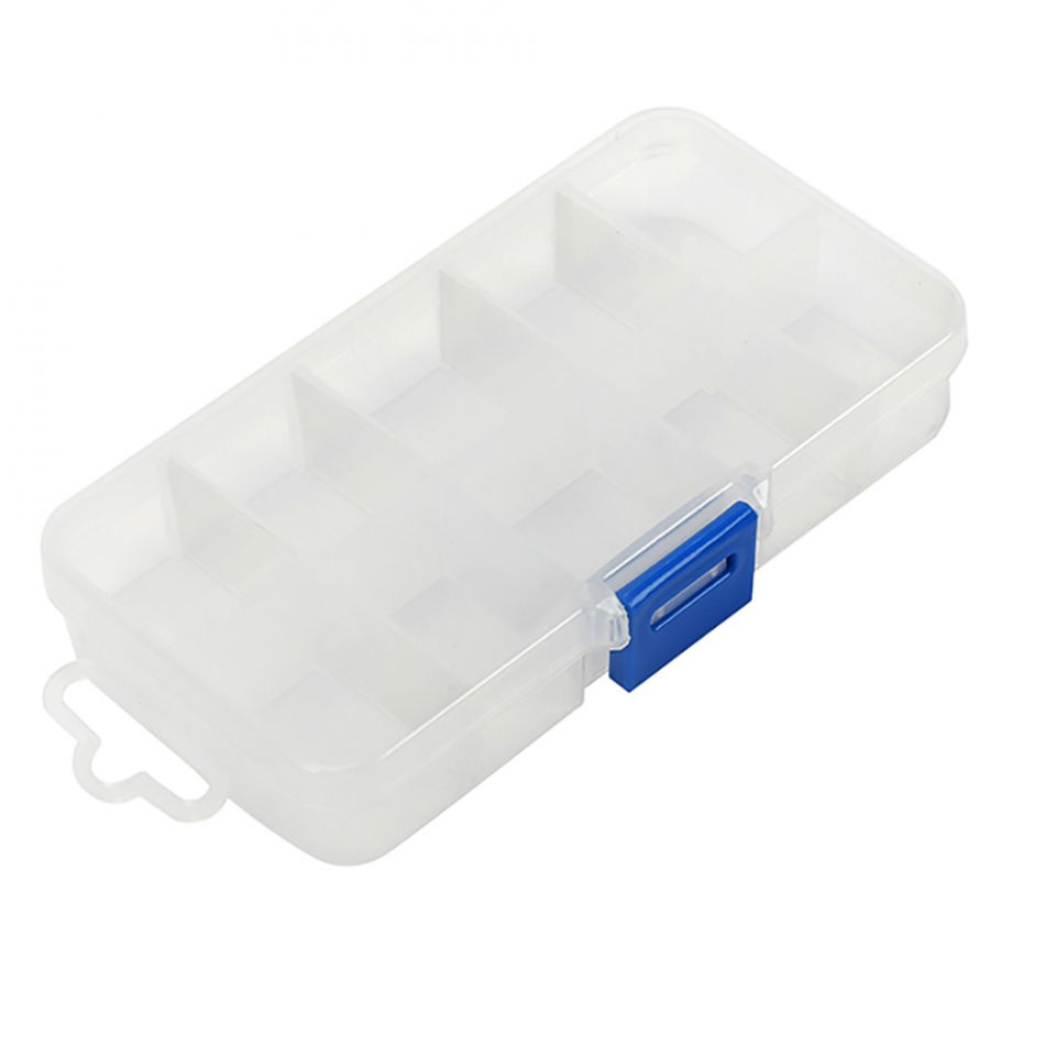 Organizador de compartimentos con tapa 10 divisiones. 10 rejillas. tamaño del producto: 134 x 75 x 24mm. material pp. cómodo, duradero y fácil de transportar. adecuado para almacenamiento y organización de material pequeño. transparente. workpro
