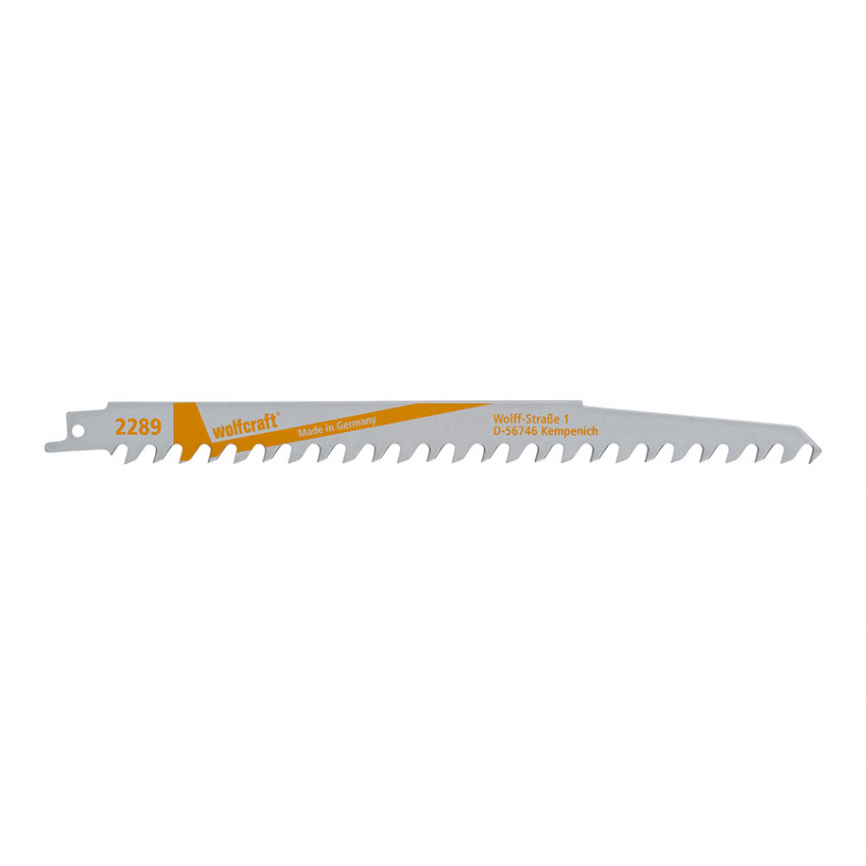 Pack 2 hojas de sierra de sable cv, madera, basto, longitud 240mm 2289000 wolfcraft hoja de sierra de sable cv adecuado para madera blanda y podas. con cortes rapidos y muy bastos, dientes especialmente afilados con una profundidad de corte de 20-190mm