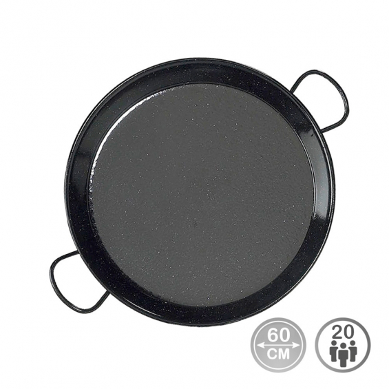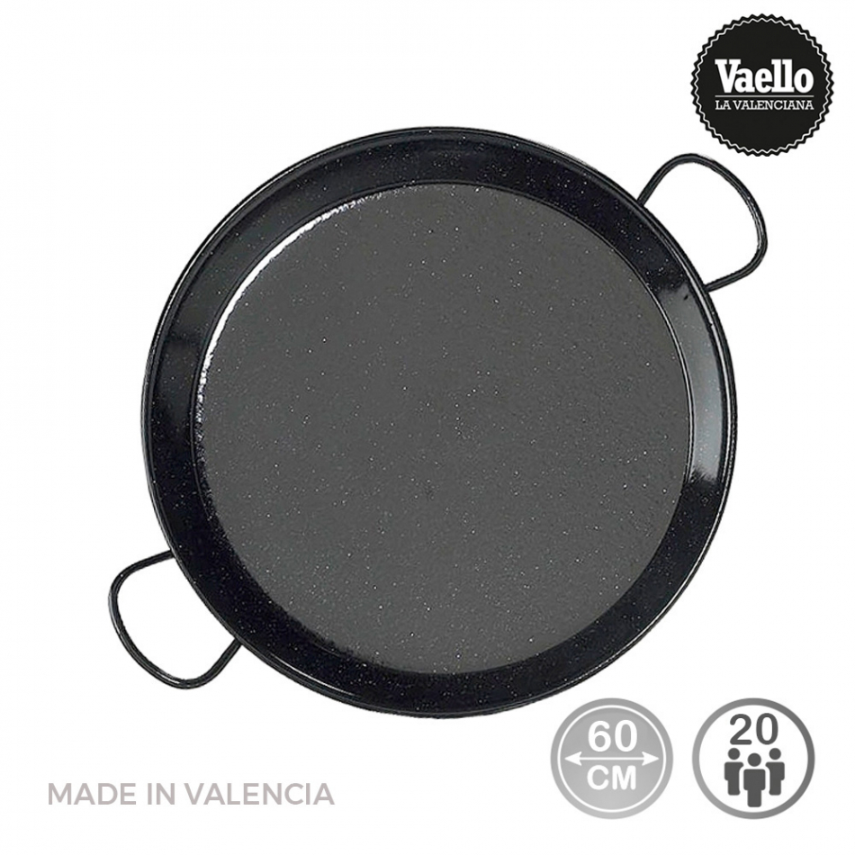 Paellera tradicional de acero esmaltado ø60cm (20 personas) apta para cocinas de gas. fabricacion nacional. atención: requiere mantenimiento. debe ser almacenado con una cubierta de aceite. vaello